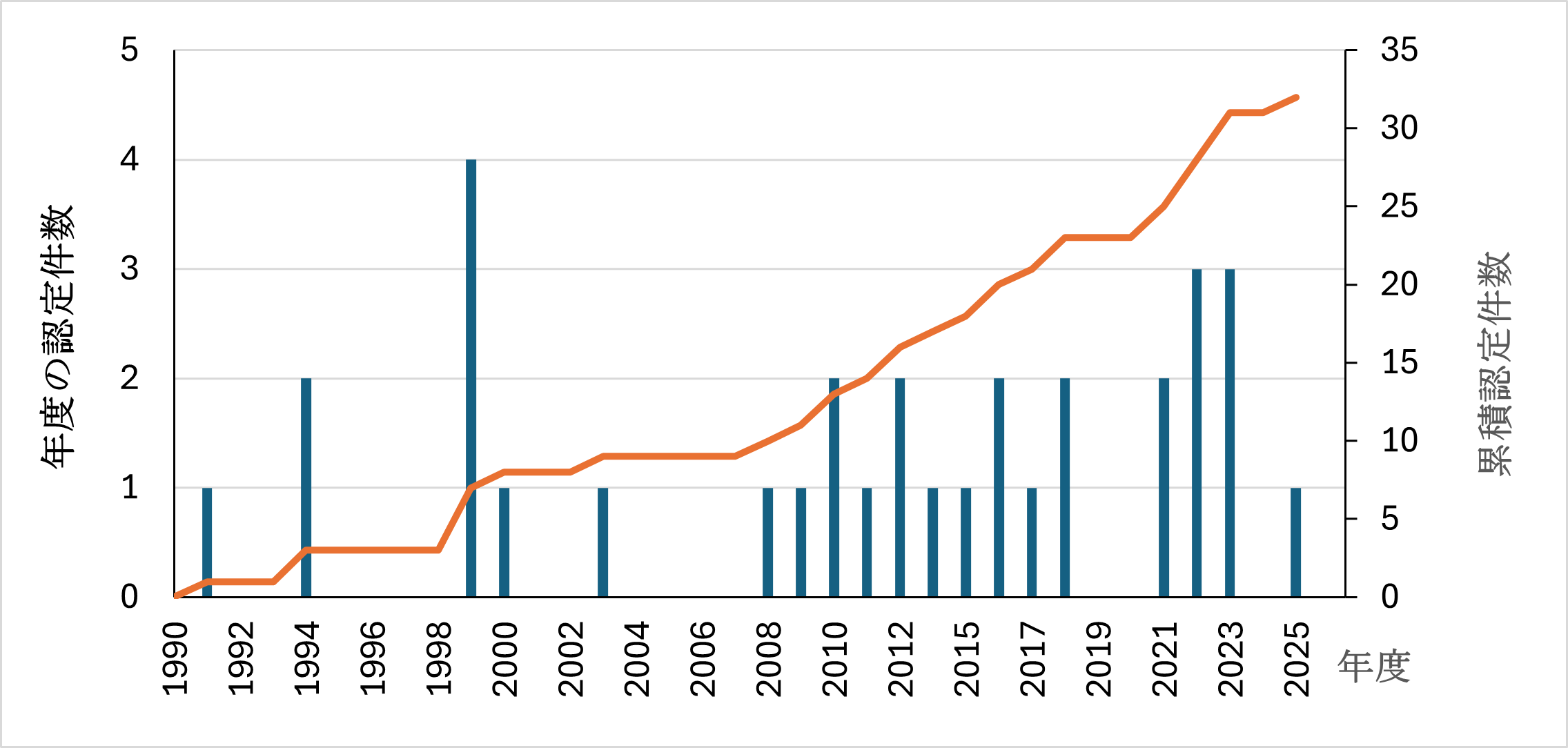 図1 年度の認定件数、累積認定件数の推移